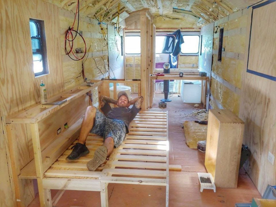 Момчето во меѓувреме се сетило дека може да ги следи оние креативци кои на интернет објавуваат како од стари возила прават свои нови „изуми“. Така, со својата заштеда од 40.000 долари, си купил стар училиштен автобус во Јужна Дакота, на цел ден возење од неговиот дом, како и други половни предмети за „новото живеалиште“.