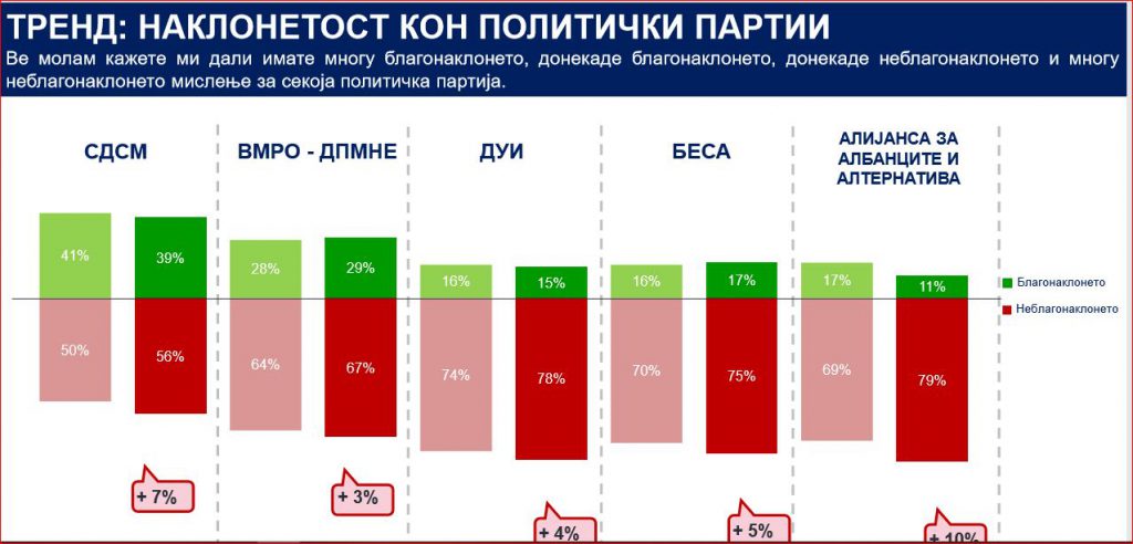 СДСМ, исто така, е партија која има најголема „благонаклонетост“ кај гласачите, иако генерално сите партии имаат поголем процент на „неблагонаклонетост“.