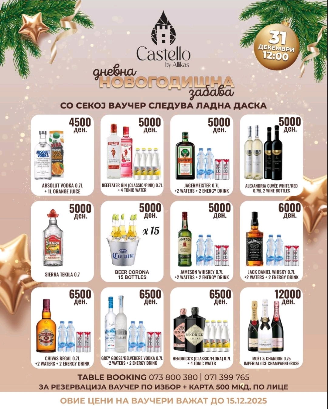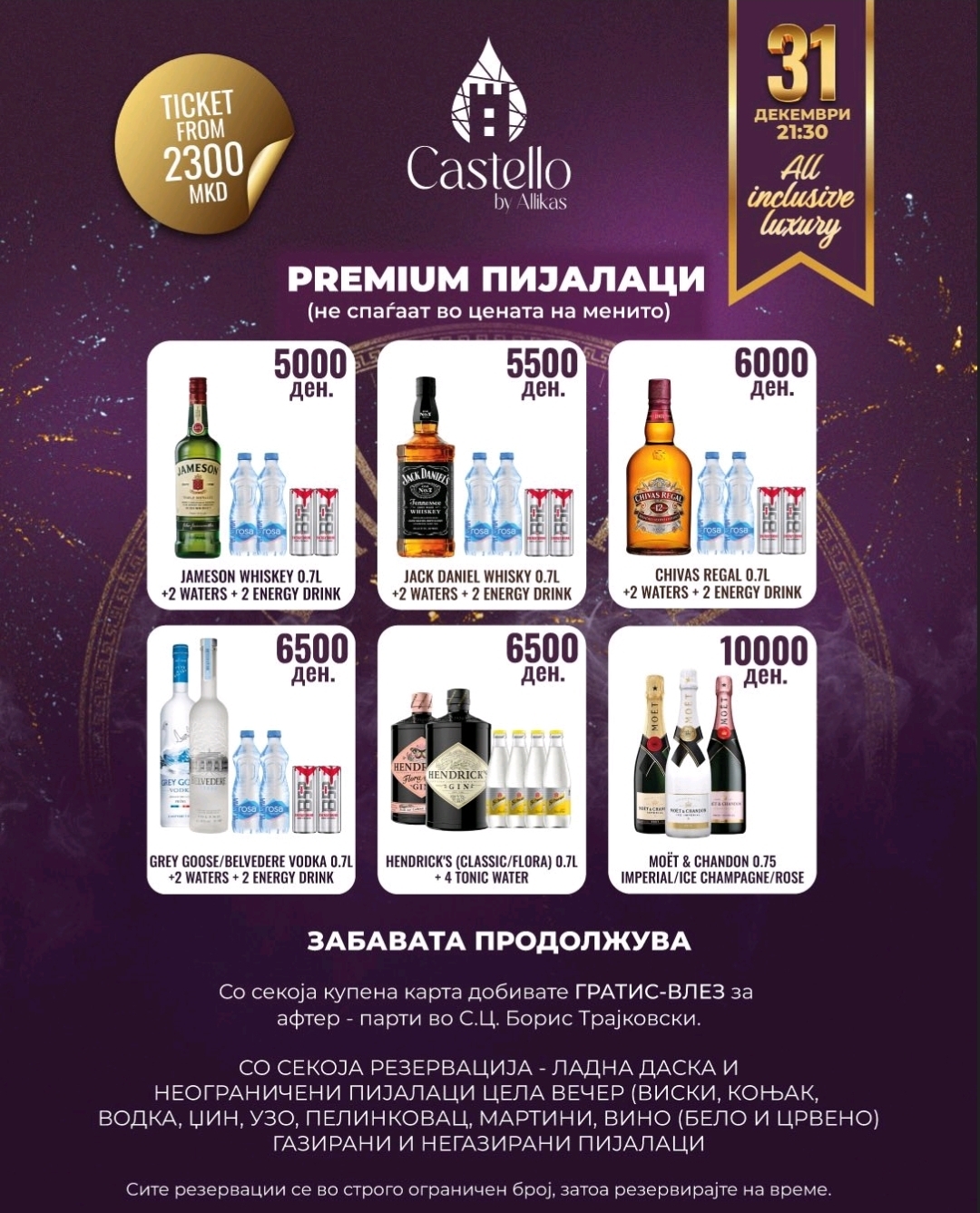 Бидете дел од најлудата новогодишна забава во Castello By Allikas! Спроти Американска Амбасада до касарна Илинден.