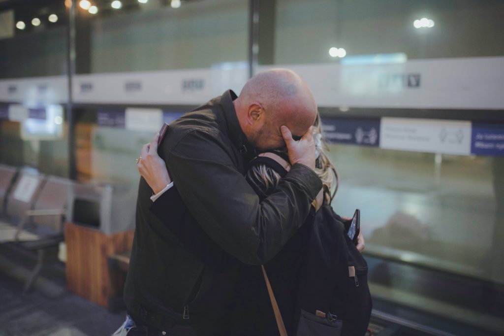 „Доцниш 1.399 дена“: По четири години маж со солзи и цветови ја дочека партнерката на скопскиот аеродром