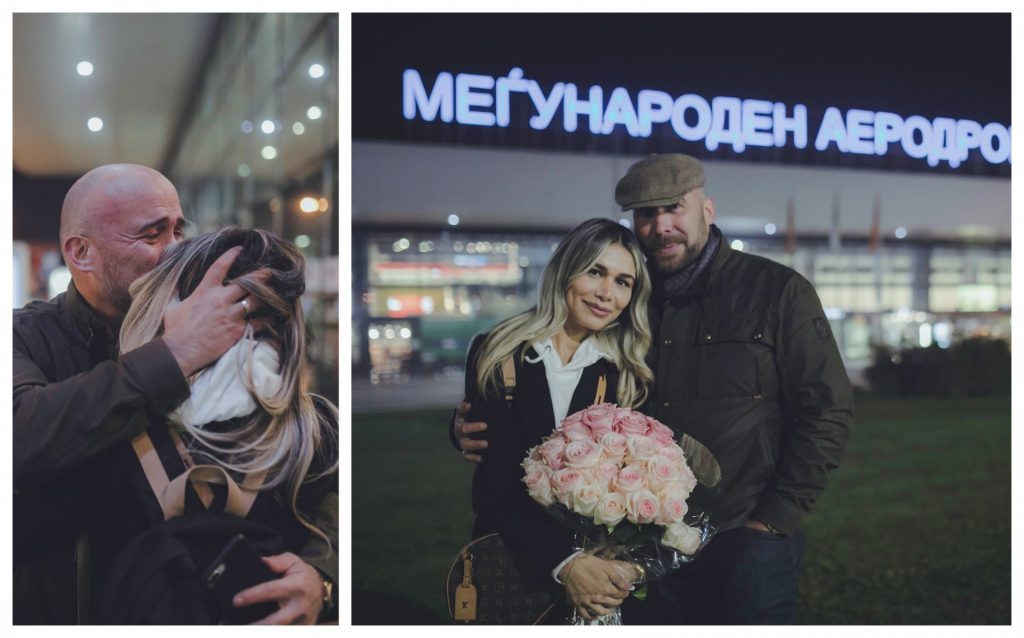 „Доцниш 1.399 дена“: По четири години маж со солзи и цветови ја дочека партнерката на скопскиот аеродром