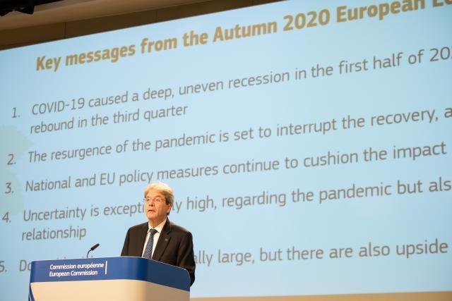 Есенските економски проекции на Европската Комисија не се охрабрувачки, вториот бран на коронавирусот и новите рестриктивни мерки дополнително ги влошуваат условите, јави дописничката на МИА од Брисел.