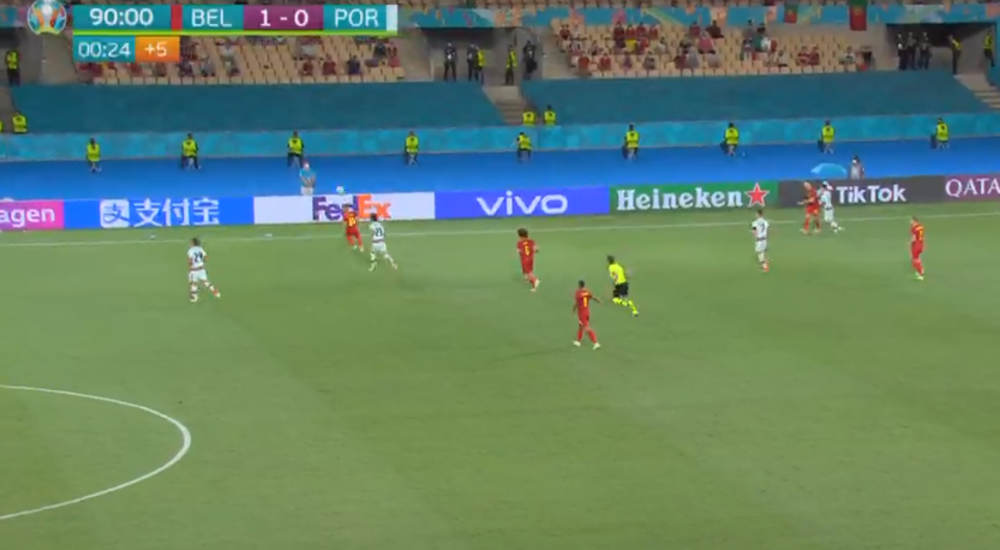 Во 25 минута, Роналдо прецизно шутираше кон мрежата од слободен удар, но голманот Куртоа одлично го прочита и спречи сигурен гол со раце. португалците добро поставени на средина на теренот, во случај белгијците да тргнат кон нивната половина. одлични беа и во офанзивата и дефанзивата.