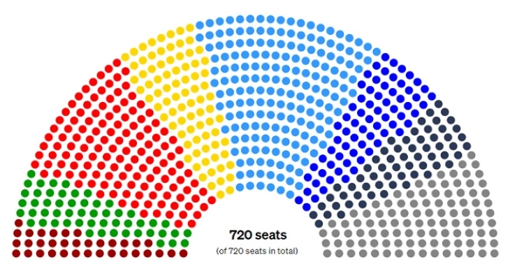 Како што јави дописникот на МИА од Брисел, трета политичка сила остануваат либералите со 82 мандати, пред десничарската група Европски конзервативци и реформисти (ЕЦР) со 71 и екстремно десничарска групација Идентитет и демократија (ИД) со 62 места. Блокот на Зелените и Европска слободна алијанса (ЕФА) освои меѓу 53 европратеници, а Левицата 34 места.