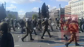 На крајот од официјалниот дел и додека голем дел од демонстрантите си заминуваа, тензична беше атмосферата пред грчкиот Парламент, полицијата употреби солзавец и приведе неколку лица.