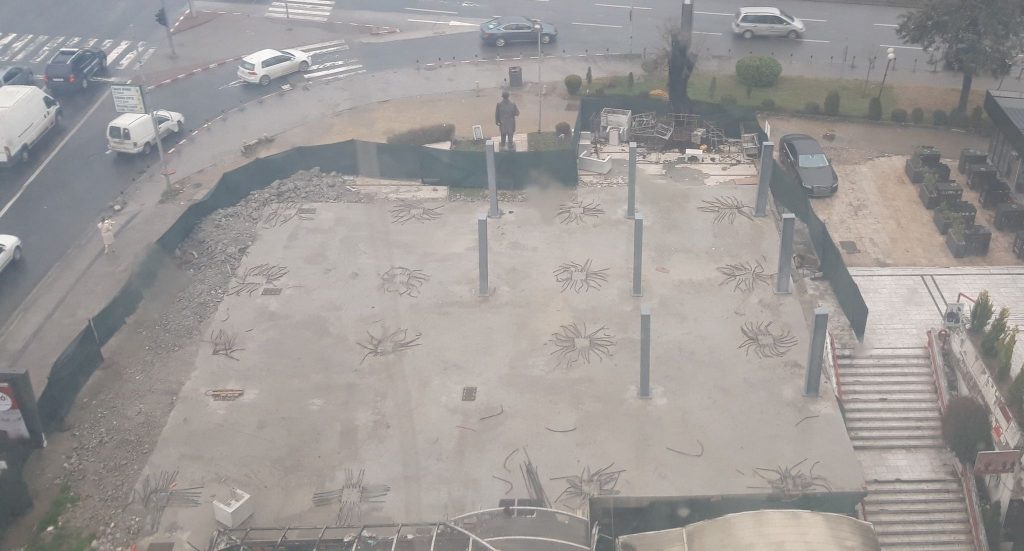 Четири месеци по уривањето на дивоградбата на местото каде беше кафулето „Фонтана“ во ТЦ Мавровка, повторно „никнаа“ столбови. Но, разликата сега е што тие не се армирано-бетонски, туку наликуваат на метални профили.