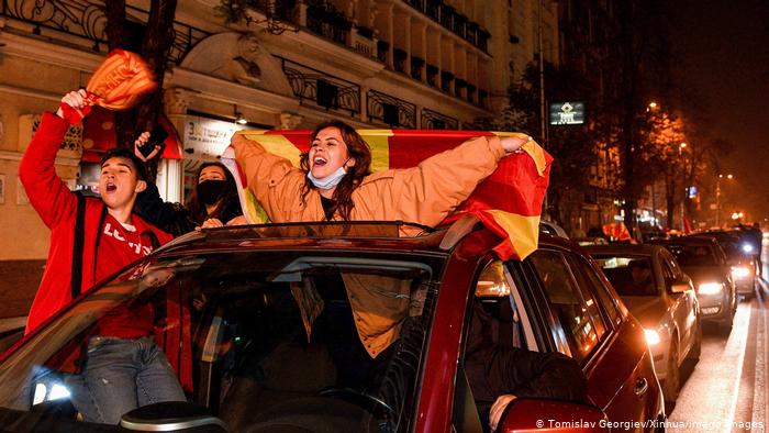Колони од возила со свирење и развеани државни знамиња, изминатата ноќ ја претворија во ден. Така беше и на скопските, и на улиците во сите македонски градови, каде што се славеше победата на македонската фудбалска репрезентација над Грузија и првиот пласман на Европското првенство (ЕП), пишува Дојче веле.
