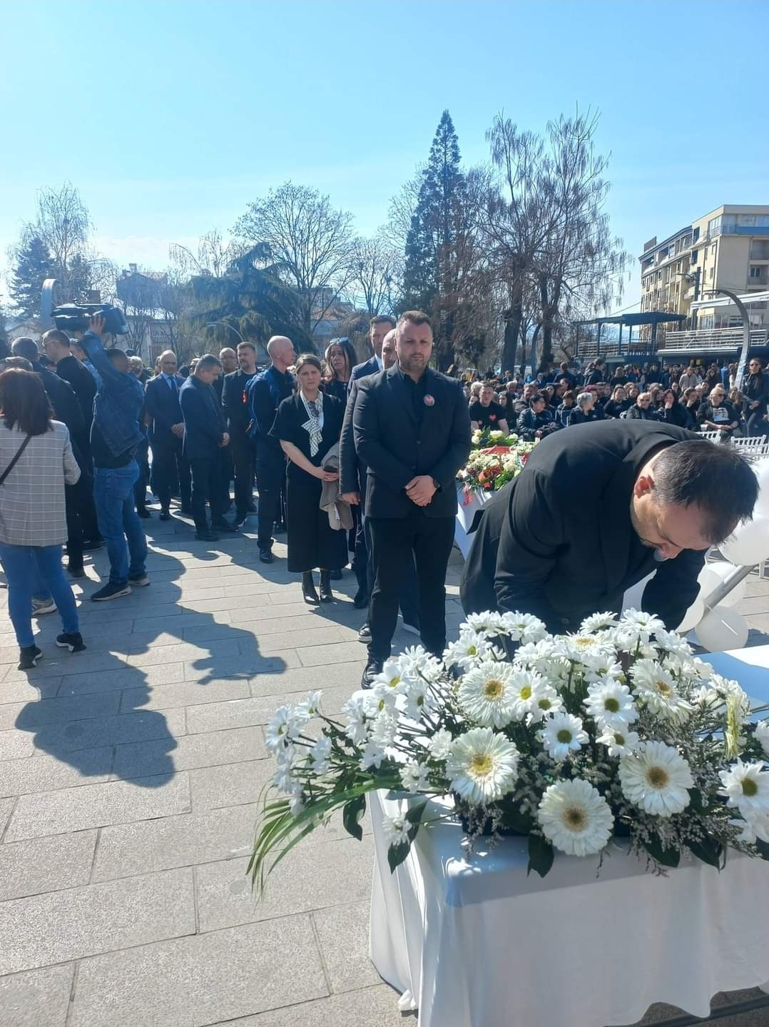 ГАЛЕРИЈА: Граѓани и политичари се потпишуваат во книгата на жалост на плоштадот во Кочани
