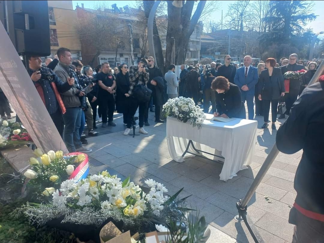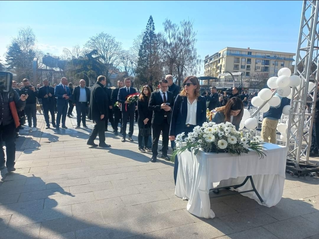 ГАЛЕРИЈА: Граѓани и политичари се потпишуваат во книгата на жалост на плоштадот во Кочани