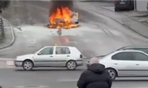 Од видеото што го објави ТВ21, може да се види дека возилото гори на улицата „Македонско-косовска бригада“, односно на раскрсницата помеѓу оваа улица, булеварот „Никола Карев“ и улицата „Славеј Планина“ во Скопјe.
