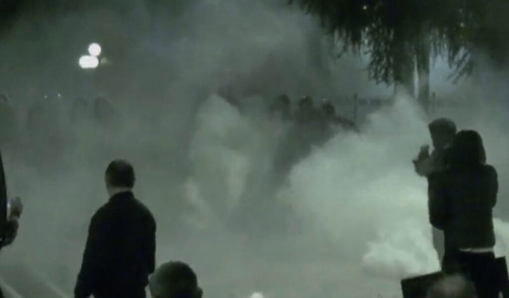 Како што може да се види од фотографиите, чад го покрива просторот, додека демонстрантите не го напуштаат местото на настанот.