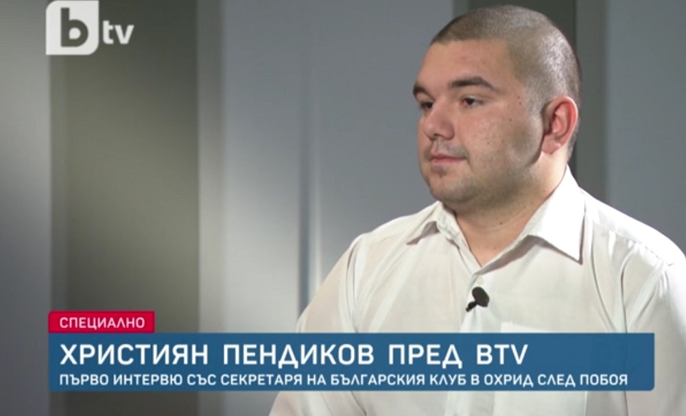 Христијан Пендиков, секретарот на охридскиот бугарски клуб „Цар Борис Трети“, кој беше претепан пред кафе-бар во Охрид кон средината на јануари и потоа со бугарски владин авион беше пренесен во Софија на лекување, денеска во интервју за бугарската телевизија БТВ говореше за нападот, како и за заканите кои, како што вели, продолжувале и еден месец подоцна.
