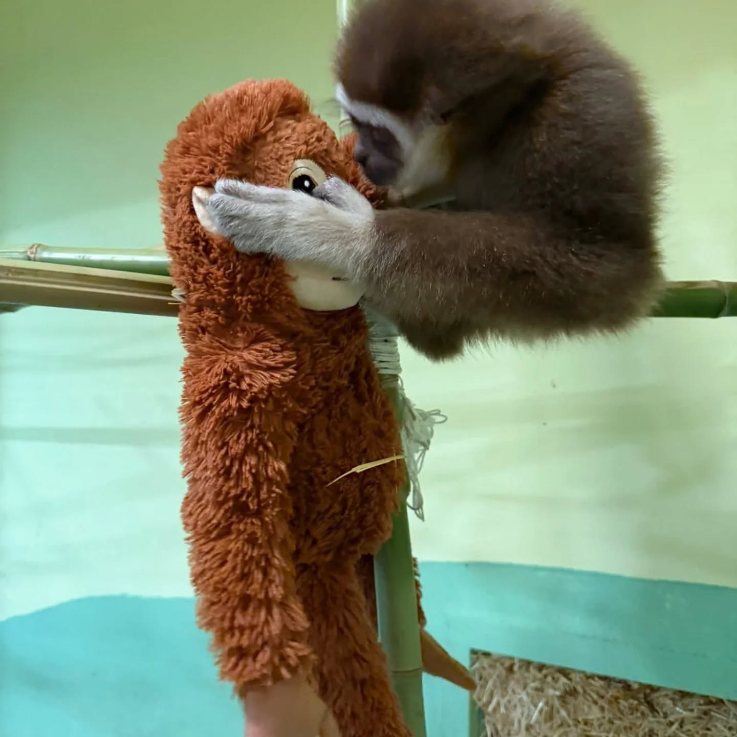 И мајмунчето Делфина отфрлено од мајката во ЗОО Скопје доби играчка орангутан