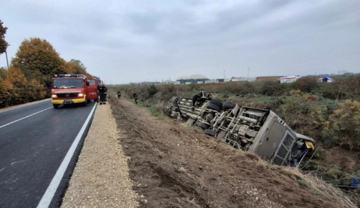 Министерството за внатрешни работи наведува дека автобусот, од непознати причини, излетал од патот и се превртел. Несреќата се случила денеска околу 14:45 часот.