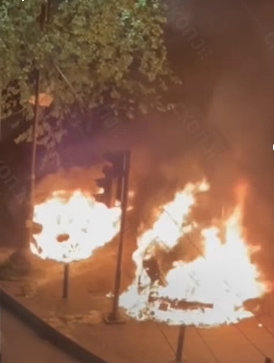 МВР со детали за пожарот во Карпош: изгореа „ауди“ и „пежо“, оштетен и семафор