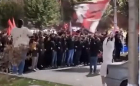 Снимките што се појавија на социјалните мрежи покажуваат толпа како скандира „УЧК“, „каурски пи*ки“ и „Смрт за Србија“.