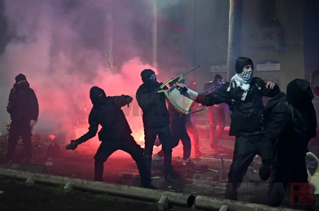 За време на протестите дојде до сериозни нереди, при што толпата фрлаше камења, молотови коктели и други предмети кон полицијата. Запалени беа неколку канти за отпад, како и едно полициско комбе.