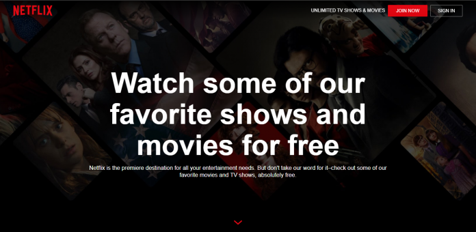 Една од најпопуларните платформи за стриминг на филмови и серии Нетфликс нуди бесплатен преглед на неколку филмови и неколку епизоди на серии. Сите кои што немаат претплата на оваа платформа сега се пречекани со пораката: „Погледнете некои од нашите омилени шоуа и филмови бесплатно.“