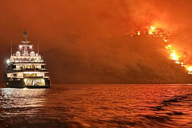 Од огномет и пиротехнички средства од јахта, предизвикан пожар на грчкиот остров Идра