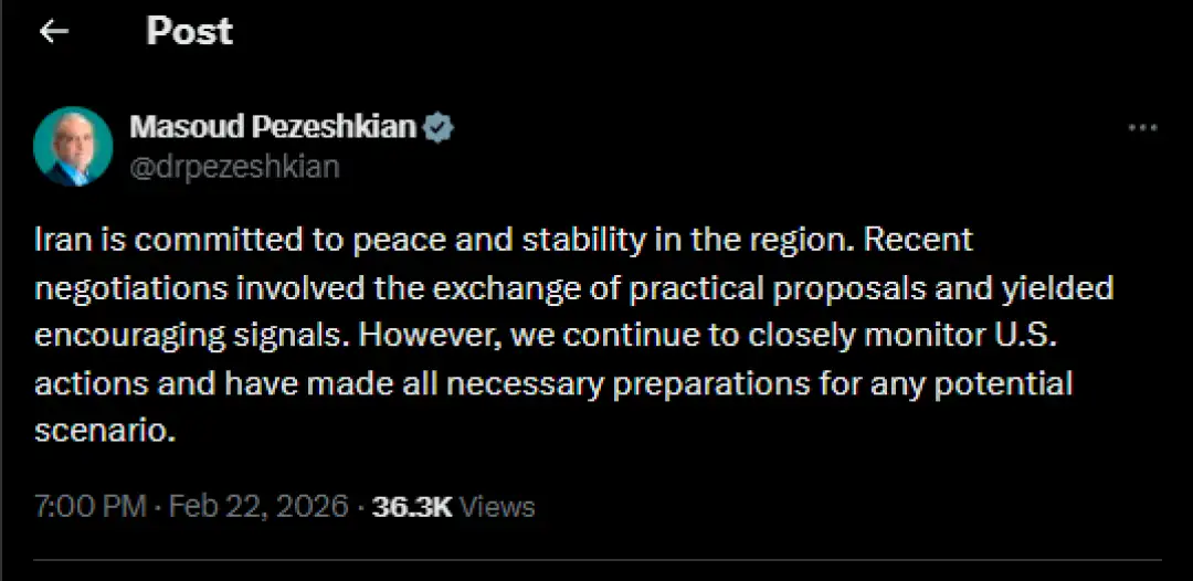 – Иран е посветен на мирот и стабилноста во регионот. Неодамнешните преговори вклучуваа размена на практични предлози и дадоа охрабрувачки сигнали. Сепак, ние продолжуваме внимателно да ги следиме активностите на САД и ги направивме сите потребни подготовки за какво било потенцијално сценарио, објави Пезешкијан на платформата Х.