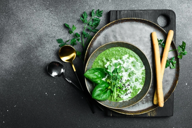Пржете го лукот многу кратко во маслиново масло, додадете го брашното и уште масло доколку е потребно, пржете кратко и промешајте, додадете го сварениот и ситно исецкан спанаќ и прелијте го со млекото, додадете сув зачин, бибер и сол доколку е потребно. Гответе уште 15-20 минути. Уживајте во оброкот!