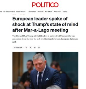 Роберт Фицо, еден од ретките лидери на ЕУ кој често ги поддржува ставовите на Трамп за слабостите на Европа, изразил загриженост за „психичката состојба“ на американскиот претседател, рекоа двајца дипломати.