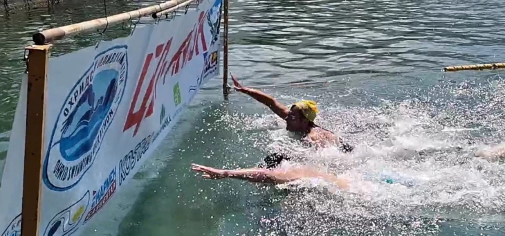Евгениј Поп Ацев е победник на денешниот пливачки маратон одржан на патеката во должина од 2,5 милометри од Горица до Охрид.
