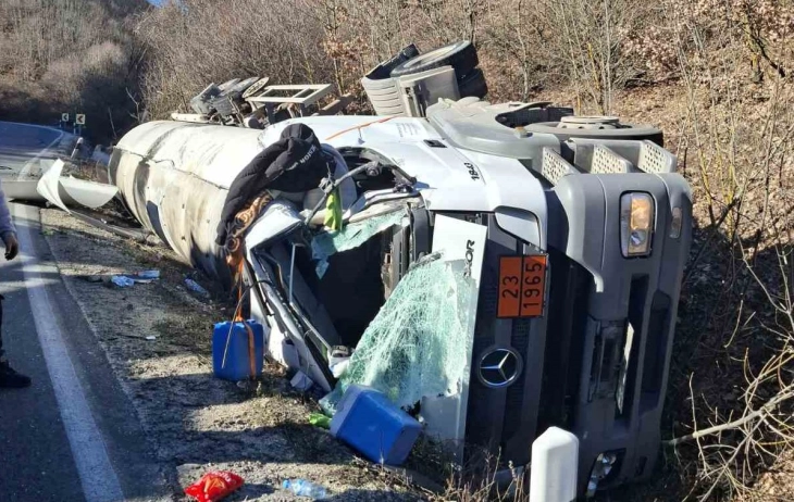 Повеќе од 24 часа во целосен прекин е сообраќајот на патниот правец Струга – граничен премин „Ќафасан“ поради превртена цистерна на патот.