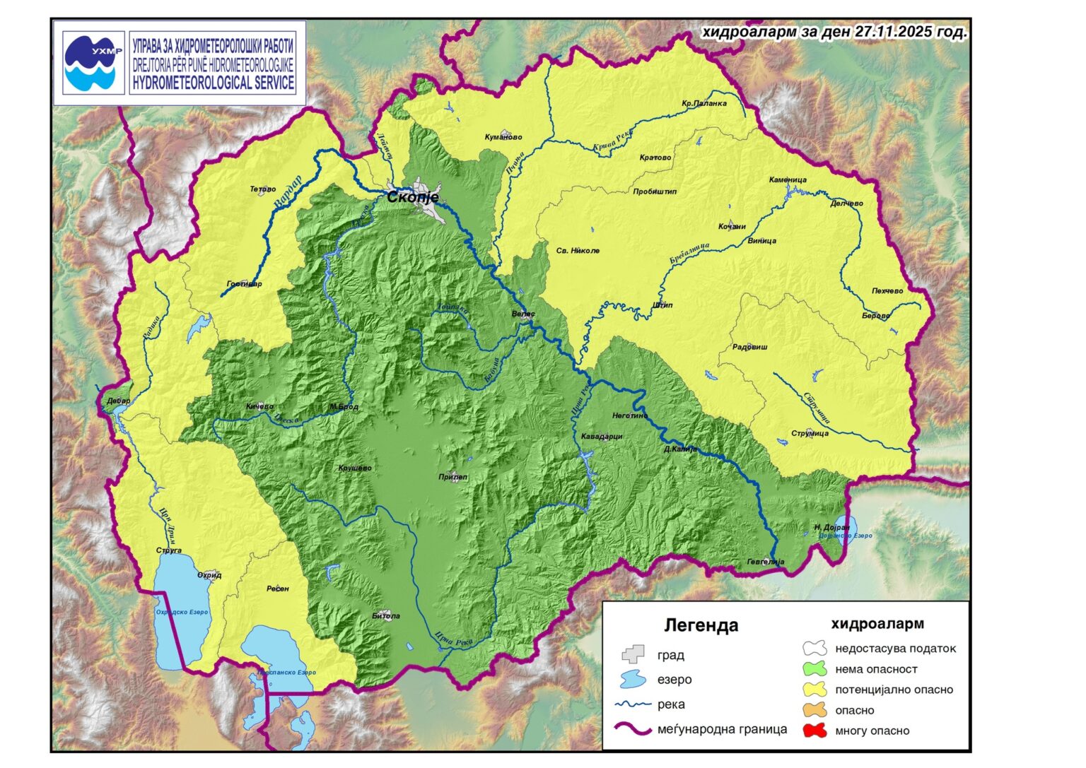 Жолто ниво на предупредување од поплави – постои потенцијална опасност од излевање на реките
