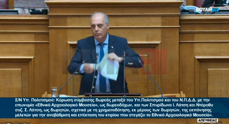 Ова е Договорот од Преспа. Ако постоеше кредибилна, национална, патриотска, општествена, народна грчка Влада ќе го стореше ова, рече лидерот на десничарско-националистичка партија Грчко решение Кирјакос Велопулос од говорницата на Парламентот и го искина листот со Договорот од Преспа, јави дописничката на МИА од Атина.