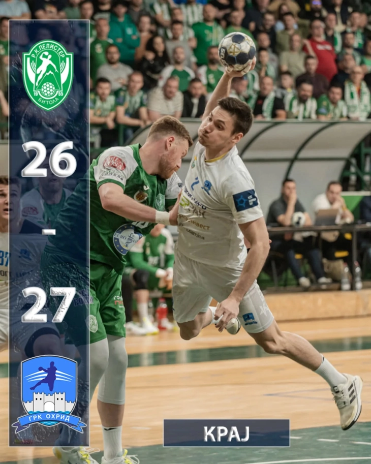 Во дерби натпреварот од 26 коло во македонската ракометна Суперлига, ГРК Охрид вечерва во драматична завршница го совлада Еурофарм Пелистер на гостински терен во Битола со 27-26.