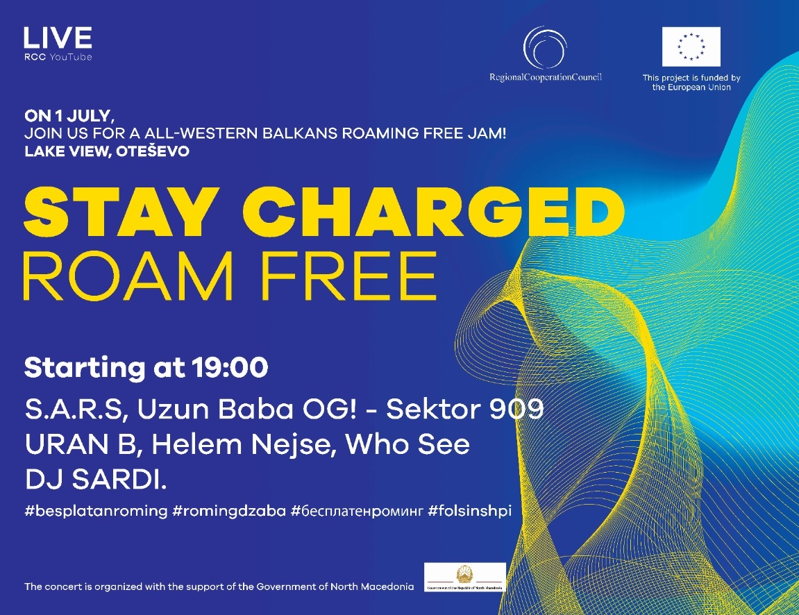 Концерт со повеќе групи и ди џеи од регионот ќе се одржи на 1. Јули во Отешево за да се одбележи укинувањето на роамингот на Западен Балкан, соопшти Регионалниот совет за соработка(РСС).