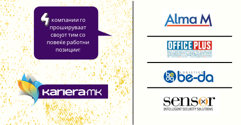 Сакате да изградите кариера? Над 400 отворени работни позиции кои се лесно достапни на KARIERA.mk, меѓу работодавците и Alma M, Office Plus, Be-Da Logistics и Sensor!