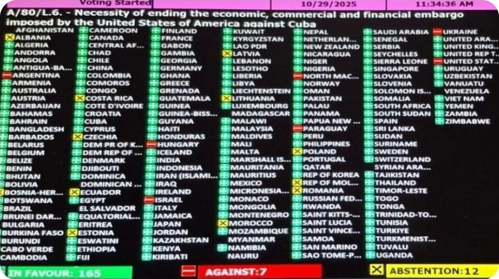 Генералното собрание на ОН повторно ѝ даде силна поддршка на Куба, усвојувајќи резолуција со која се повикува на укинување на американското ембарго што е во сила повеќе од шест децении. За документот гласаа 165 земји, против беа седум, меѓу кои и Македонија, а 12 беа воздржани.