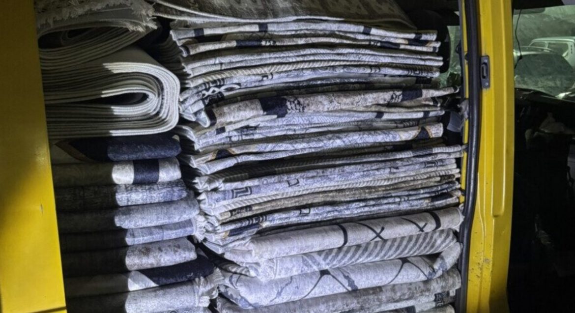 Имено, откако било сопрено товарно возило „форд транзит” со скопски регистарски ознаки, управувано од А.Ј., при преглед на возилото во товарниот дел пронајдени се 300 теписони и стази, без соодветна документација.