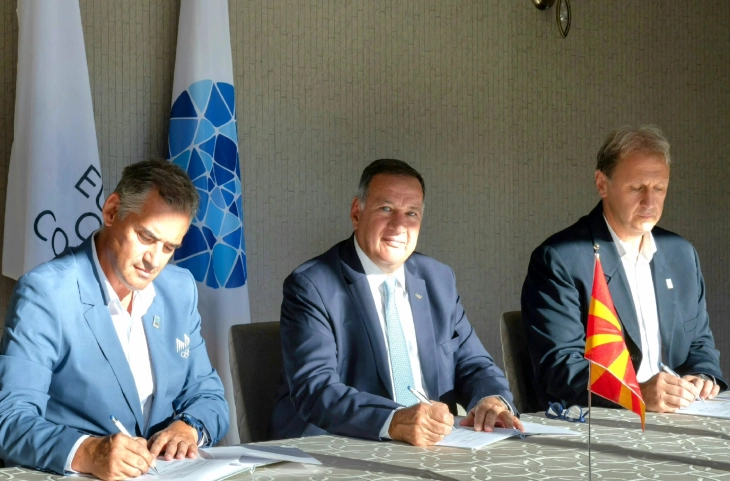 Како што соопштуваат, договорот за организација на големиот спортски настан го потпишаа претседателот и генералниот секретар на МОК, Даниел Димевски и Сашо Поповски, од една, и претседателот на Европскиот олимписки комитет Спирос Капралос во Марибор, градот кој беше домаќин на годинешното издание.