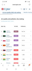 Скопје вечерва се наоѓа на четвртото место во светот по загаденост со 282 микрограми на кубен метар штетни честички по здравјето на граѓаните, објави швајцарскиот портал IQAir, кој објавува податоци за квалитетот на воздухот ширум светот.