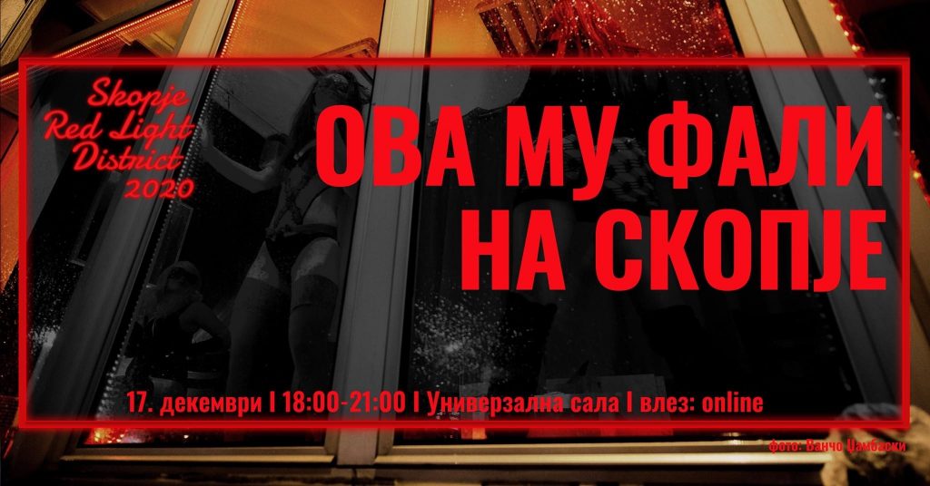 На 17.12.2020 (четврток) со почеток во 18:00 часот, ќе се одржи уметничкиот перформанс на пет девојки пред жешките излози на Универзална сала кои за момент ќе Ви го доближат шармот на улицата на црвените фенери со борделите во Амстердам, но и на времето кога Скопје живеел боемски живот и се будел со првиот мрак и посетите на атрактивните сексуални работнички.