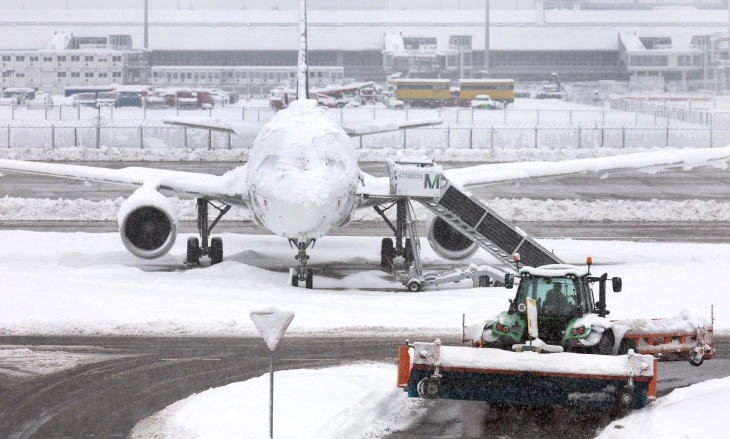 Снегот принуди 500 патници да преноќат во авиони на аеродромот во Минхен