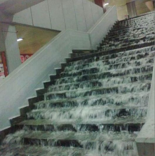 По невремето што пред неколку дена го зафати Скопје и обилните врнежи на дожд проследени со силен ветер, на социјалните мрежи се појавија фотографии од повеќе поплавени, улици, куќи и објекти. Меѓу нив, се споделува и фотографија што прикажува поплава во Градскиот трговски центар, која е стара повеќе години и не е направена при последното невреме. На фотографијата се гледаат скали кои се наоѓаат во Градскиот трговски центар, а по нив тече голема количина вода предизвикана од силен дожд.