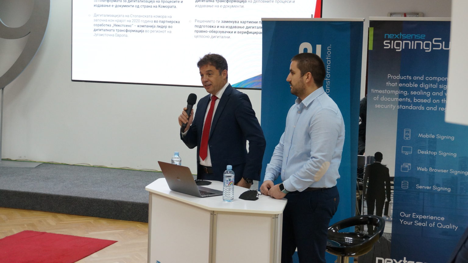 „Платформата за дигитална трансформација на деловните процеси и издавање на е-документи“ е изработена од „Некстсенс“. Се работи за веб базирана платформа која услугите на Комората ги прави 24/7 достапни од било каде со пристап до интернет и дигитален сертификат. Услугите се целосно електронски, со вклучено електронско плаќање, без потреба од физичко присуство, автоматизација на процесот за поднесување на барање и издавање документи и високи безбедносни стандарди.
