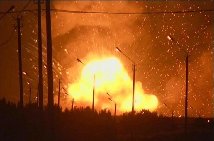 Жители на регионот, кој се наоѓа на западната страна од планината Урал, објавија слики на интернет на кои се гледа пожар и структурни оштетувања.