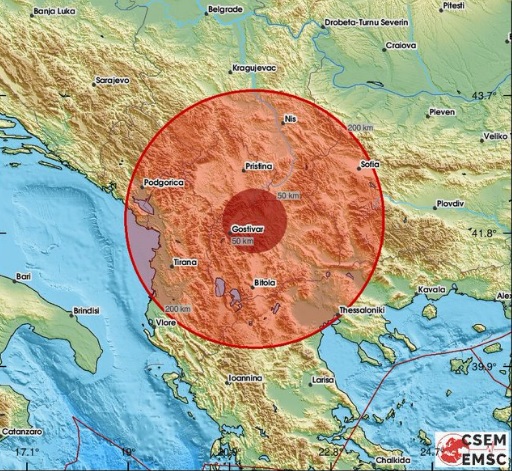 Епицентарот на земјотресот бил на 35 километри од Приштина, на границата меѓу Косово, Србија и Македонија.