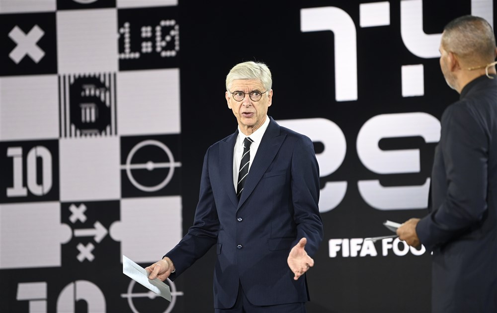 epa08890349 Former Arsenal manager Arsene Wenger (C) speaks to host Ruud Gullit during the Best FIFA Football Awards virtual TV show broadcast from the FIFA headquarters in Zurich, Switzerland, 17 December 2020. EPA-EFE/Valeriano di Domenico / POOL