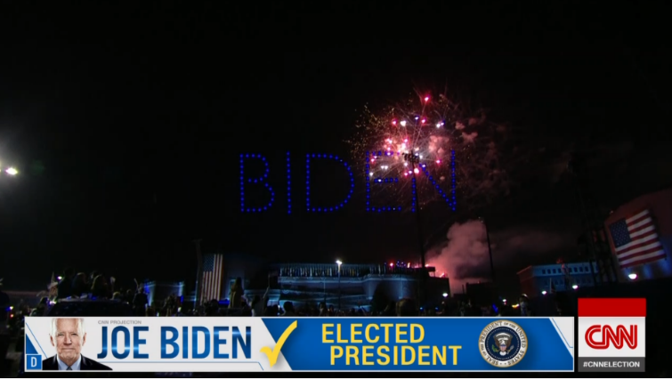 „Драги мои Американци, луѓето во оваа земја го кажаа своето и ни донесоа убедлива победа со најмногу гласови досега, дури 74 милиони. Почестен сум од довербата што ми ја дадовте. Јас ќе бидам претседател кој не дели, туку обединува. Кој не гледа црвени или сини држави, туку само обединети држави“, рече Бајден.