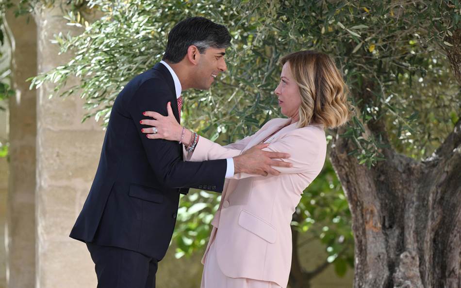Денеска во Бари, Сунак и Мелони беа фотографирани како се држат за раце и се гледаат во очи. Тие, исто така, беа видени како нежно се држат за рамениците додека Сунак, малку агресивно, се наведнува кон Мелони.