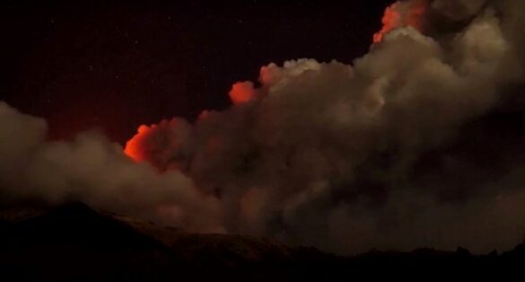 Снимките покажуваат големи облаци од пареа, пепел и лава кои избиваат од кратерот на најактивниот вулкан во Европа.