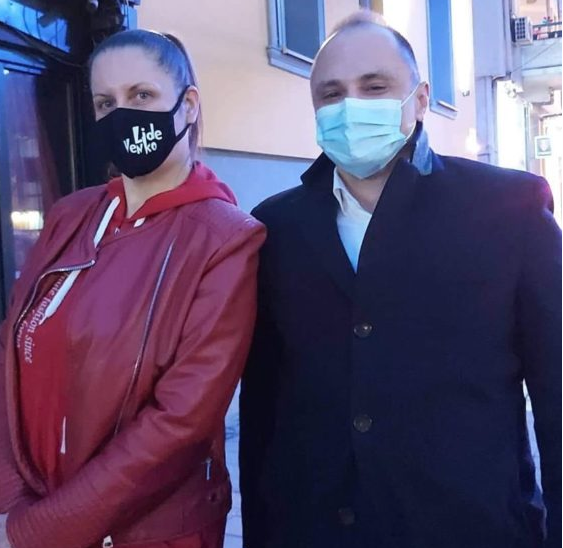 И двајцата поради коронавирусот на себе носат заштитни маски, а таа на Лиде Лиде е уникатна и со натпис „Лиде Венко“.