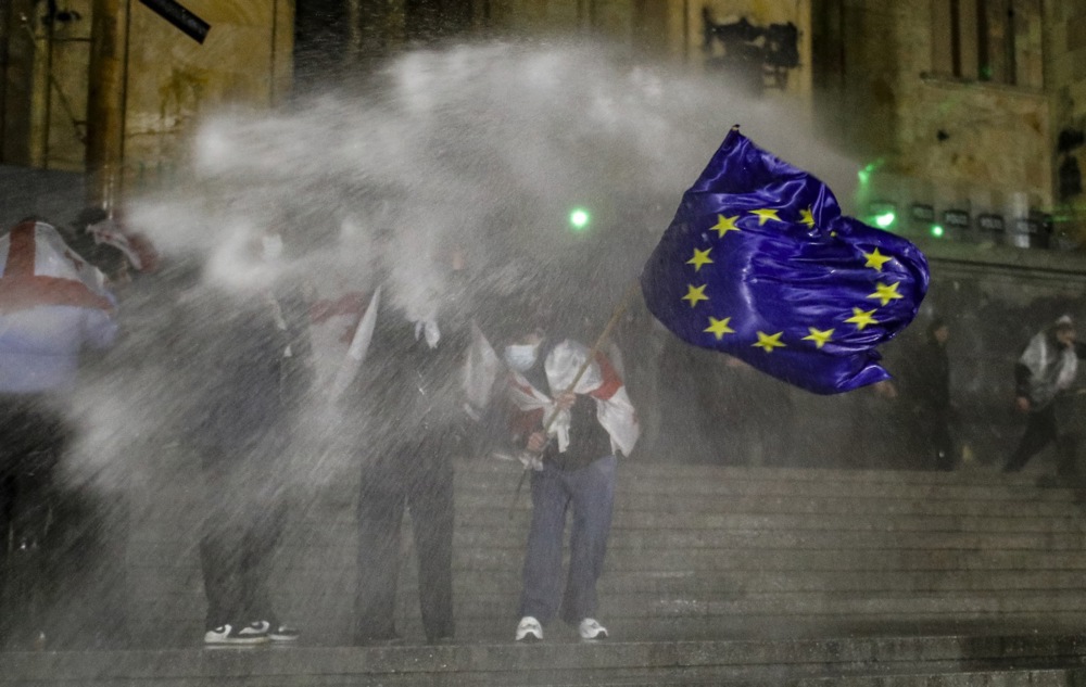 Подоцна полицијата употреби водени топови и спреј со бибер за да ја растера толпата пред палатата. Демонстрациите започнаа по локалните избори, кои опозицијата ги искористи како можност да побара обновување на суспендираната посветеност на Грузија кон европската интеграција. Тие ја обвинуваат владејачката партија „Грузиски сон“ дека се повлекува од она што го опишуваат како мешање на Западот во внатрешните работи на земјата.