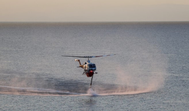 Во акцијата за гаснење учествуваат и противпожарен хеликоптер и припадници на пешадијата на грчката армија.